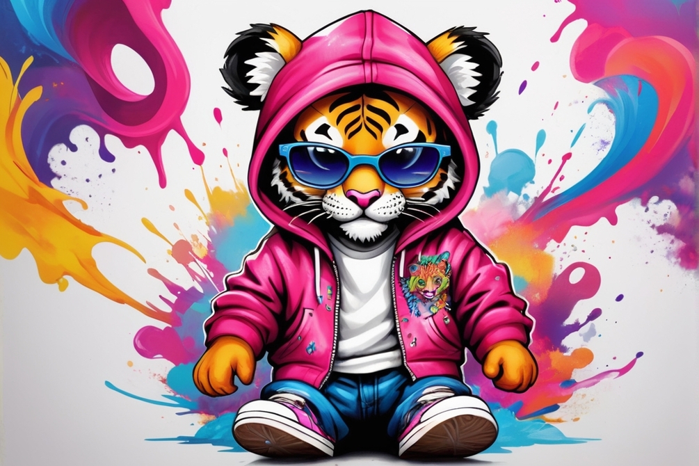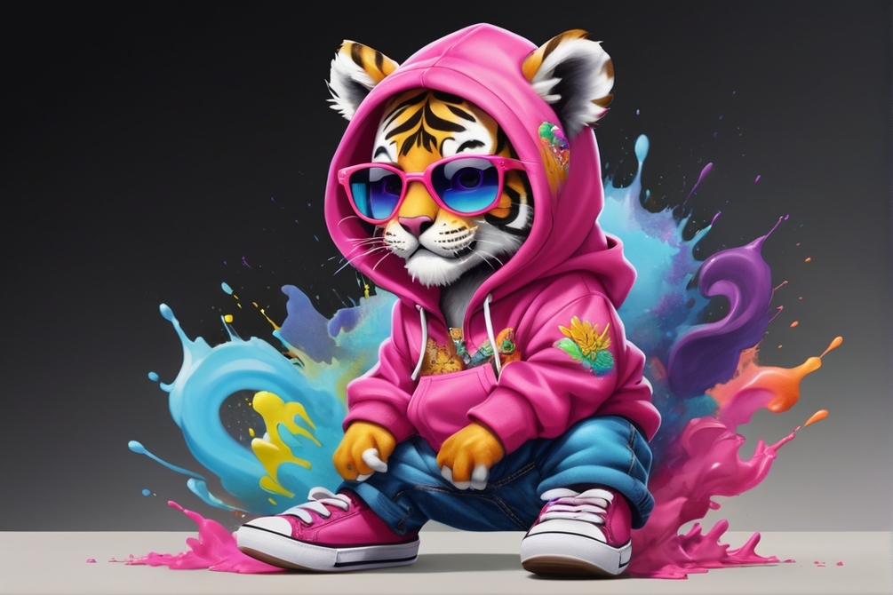 Pack of 16 baby tiger photos in a hoodie and sweat pants